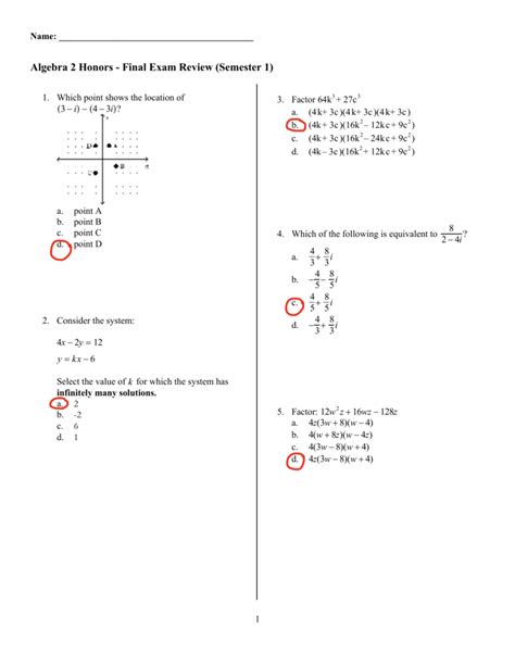 Read Honors Algebra 2 B Semester Exam Review Answers PDF