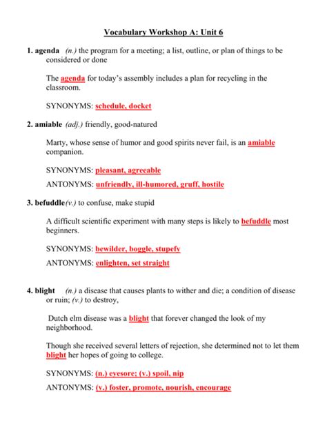 Read Online Unit 6 Vocabulary Workshop Answers Doc